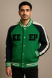 Bold varsity-font chenille patches “KE” on left & “EP” on right